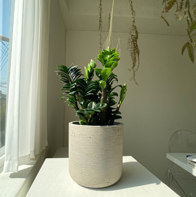 금전수 키우기 너무 쉬운데요. 금전수는 생명력이 좋아 어떠한 환경에서도 잘 자라 햇빛 아래나 그늘에서도 잘 견디지만, 반양지나 반음지가 적절한 환경이기 때문에 초보자도 내가 머무는 공간에서 키우기가 쉬워요. 그래도 햇빛을 보게 되면 줄기와 잎이 튼튼해지는데요.