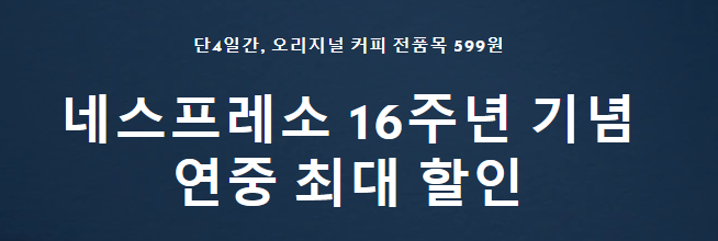 네스프레소 16주년 기념 오리지널 캡슐을 전품목 599원에 살 수 있는 기회가 왔습니다. 만만찮은 커피캡슐값을 이번 기회에 확 낮춰보세요.