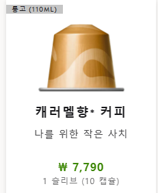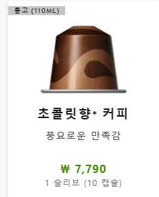 가향커피캡슐도 마찬가지로 산미는 낮고 진한 맛을 느낄 수 있습니다.