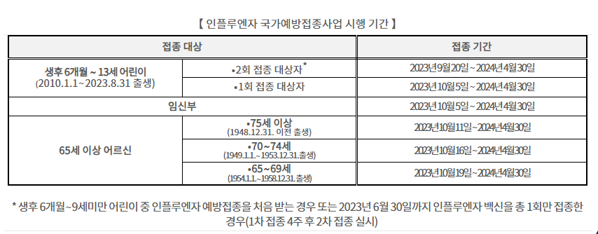 독감 접종을 무료로 받을 수 있는 기간이 나뉘어져 있습니다. 확인이 필요하겠네요.