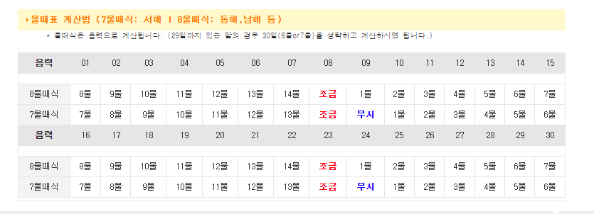 조사님들의 풍성한 어복을 기원합니다. 물때표 보는 방법을 자세히 보고 이번주는 방파제나 나가봐야겠습니다.