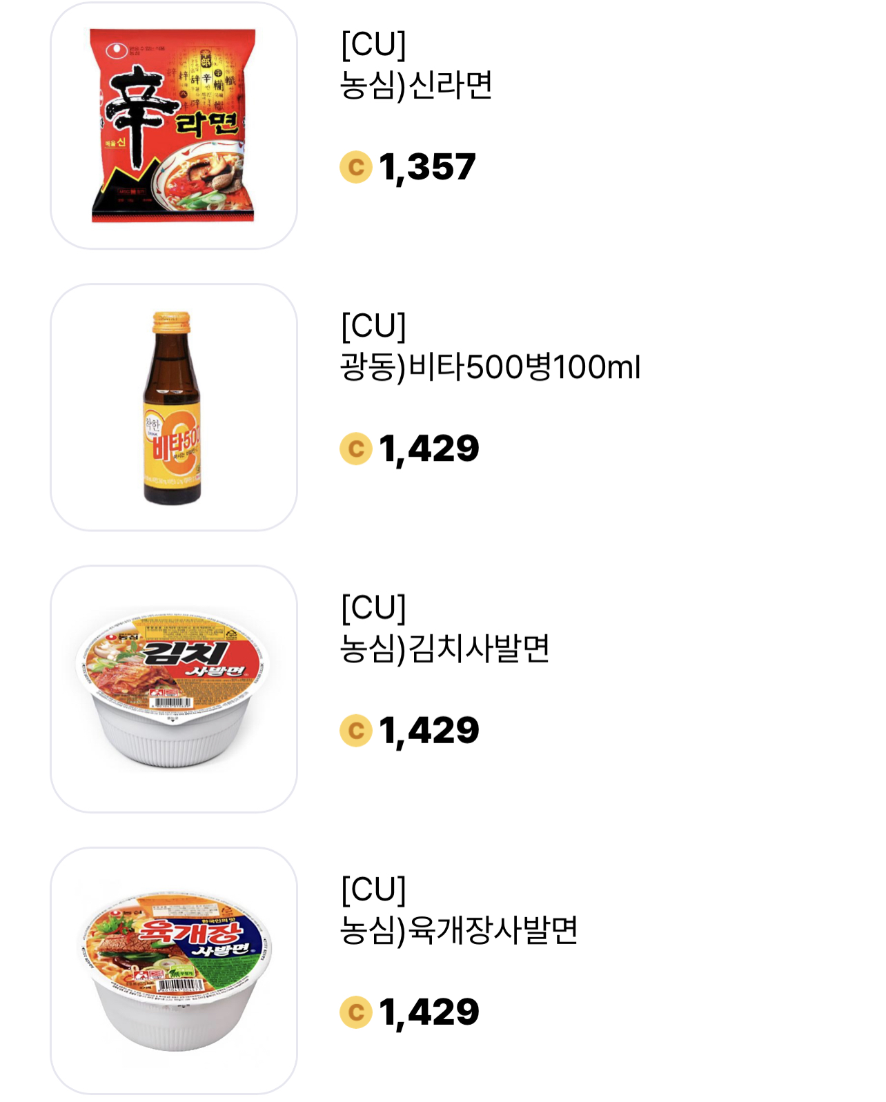 발로소득 11,188캐시는 편의점에서 아래의 물건들을 적게는 4개에서 많게는 9개까지 살 수 있는 캐시입니다. 현금과 같이 쓸 수 있으니 지출방어에 아주 좋은 앱테크죠.
