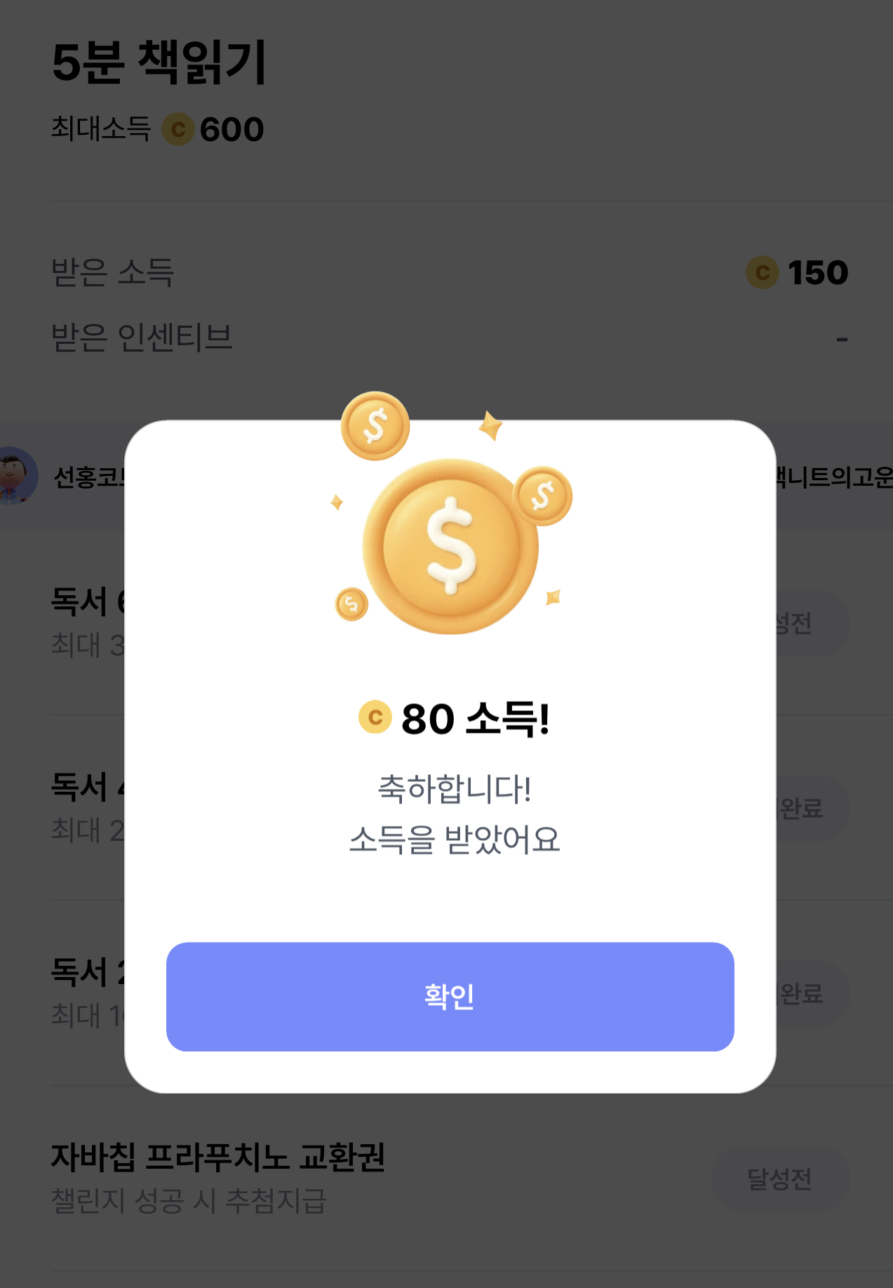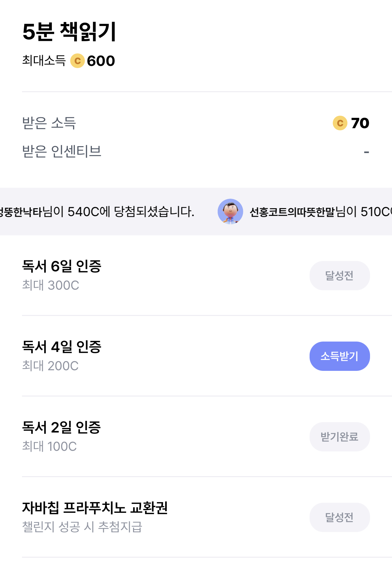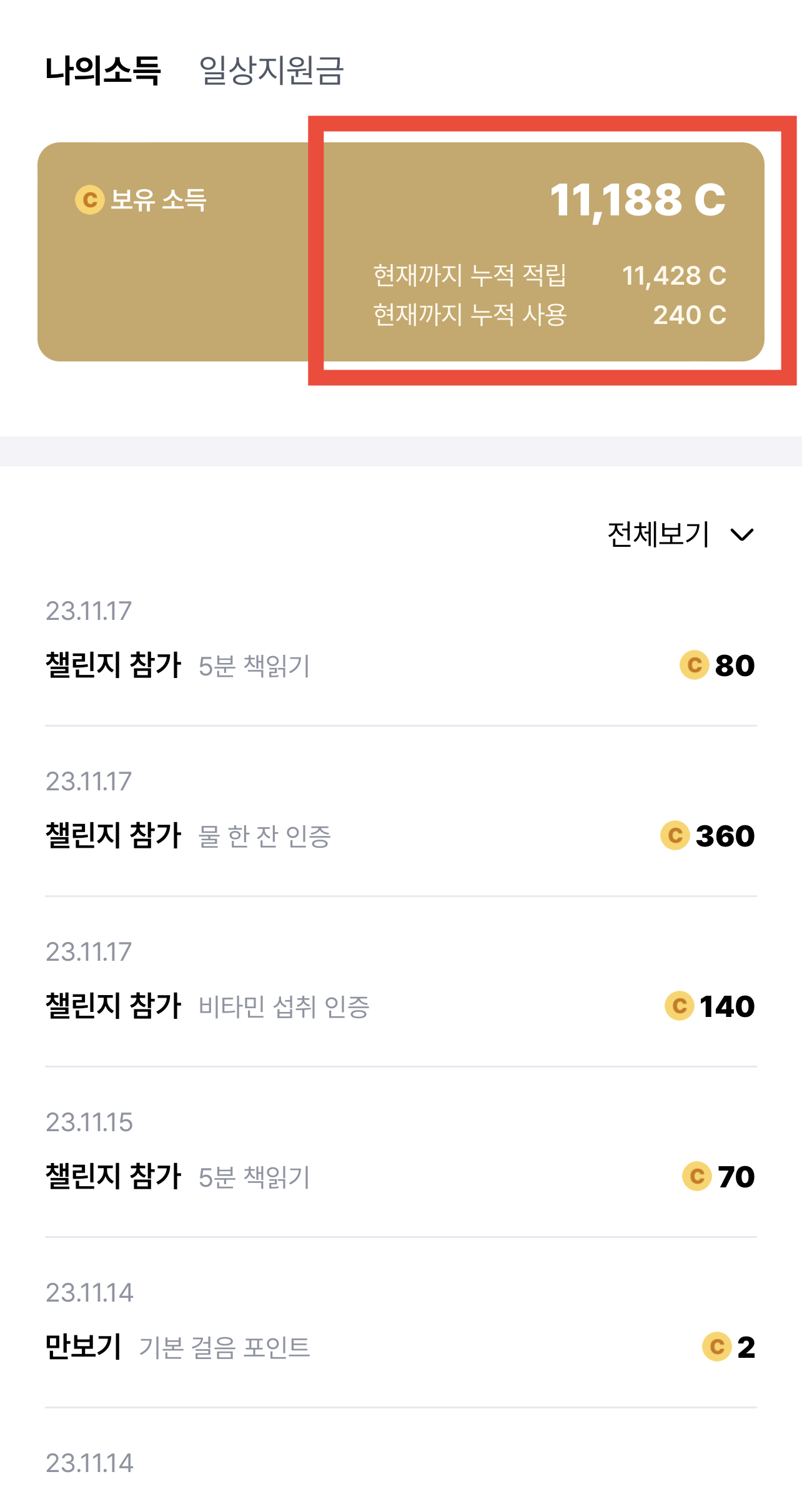 그렇지만 발로소득을 계속 해보니 꾸준하게 인증을 하는 챌린지에서는 높은 확률로 많은 캐시를 주더라고요.