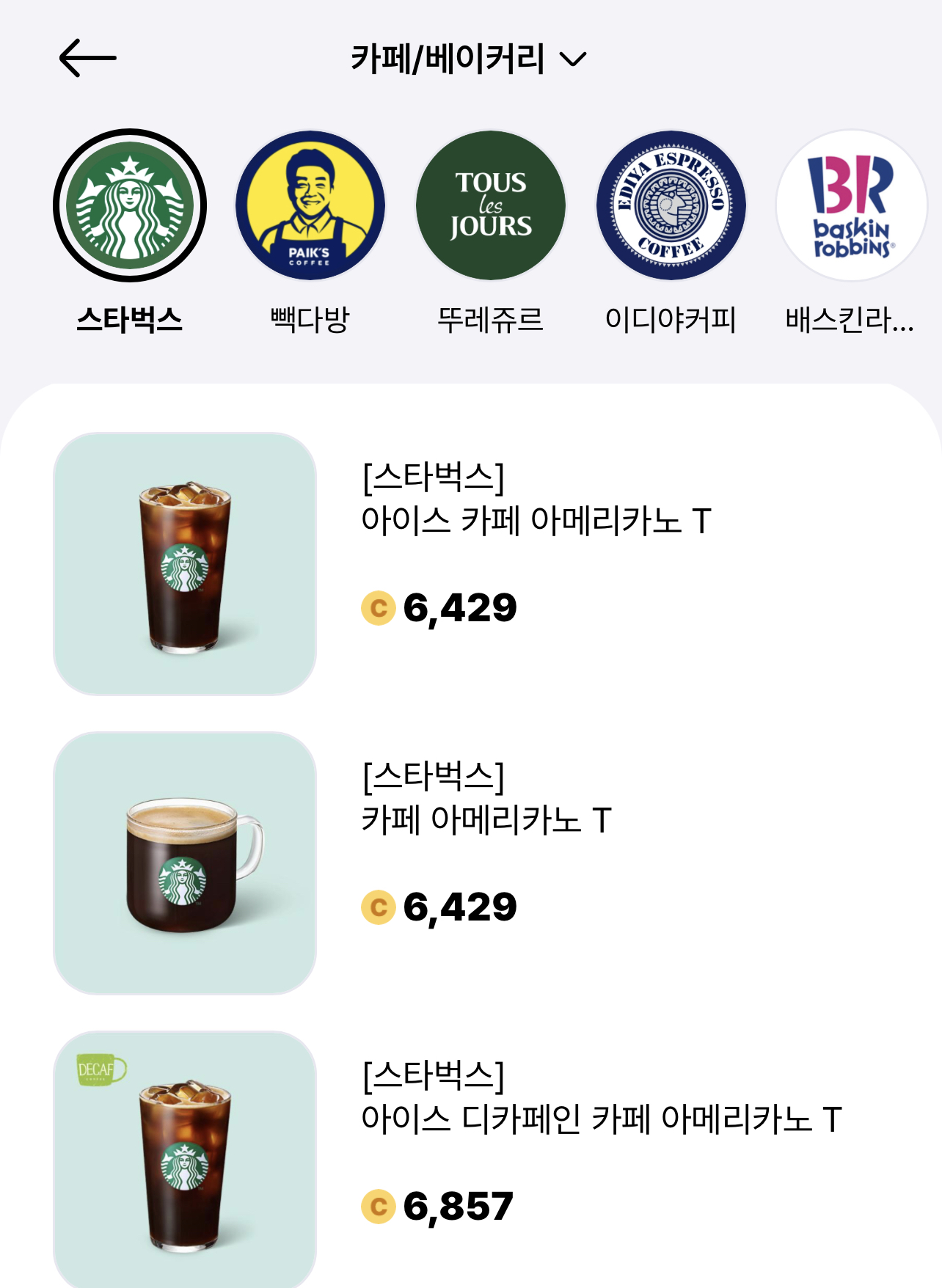 발로소득 캐시로 구매하는 방법을 알려드릴께요. 가장 인기가 많은 스타벅스 커피 쿠폰으로 구매해보겠습니다.
