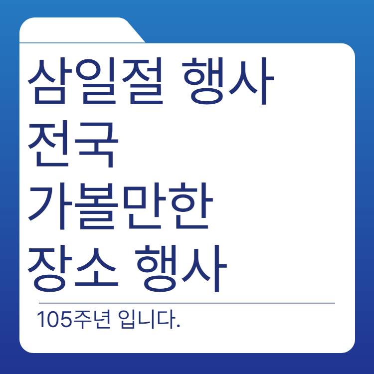 다가오는 3·1절이 105주년을 맞이하였습니다. 전국에서 삼일절 행사를 개최할 예정입니다. 아래에서 삼일절 행사 가볼만한 장소를 자세히 소개하겠습니다.