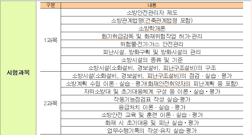 소방안전관리자 2급 시험과목은 아래와 같습니다.