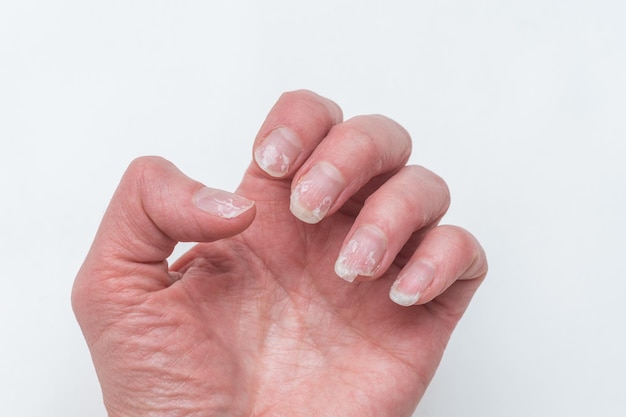 초기에는 손톱이 부러지고 산산조각이 나기 시작하며 진행되면 손톱이 떨어질 수 있으므로 젤 네일을 즐기는 사람들은 주의해야 합니다.