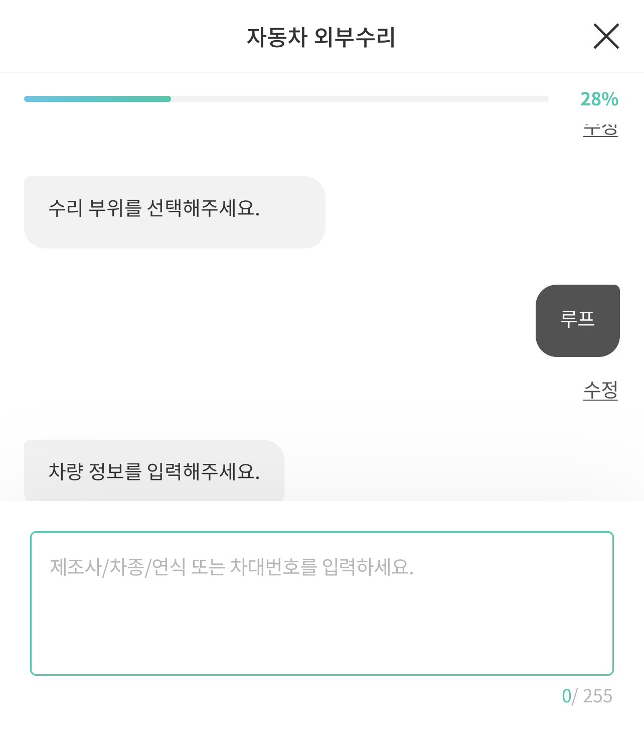간단하게 차량정보를 넣어야 공업사에서 견적을 낼 때도 정확하고 상세히 내줄 수 있으니까 최대한 정확하게 기재해 주시고요.