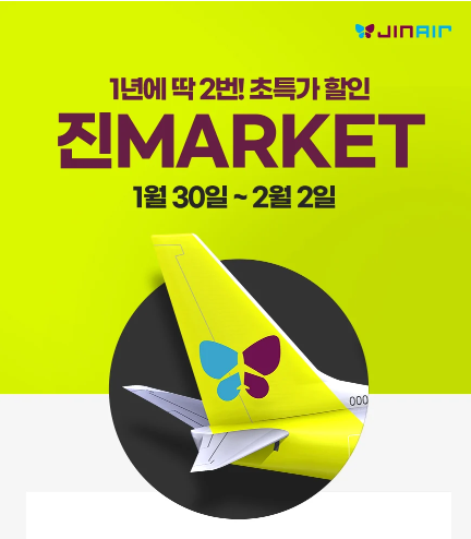 진에어가 올해 최대의 프로모션인 '진 마켓'을 개최한다고 밝혔습니다. 이번 이벤트는 오는 달 30일 오전 10시부터 다음 달 2일까지 진행될 예정이며, 올해는 지역별로 순차적으로 진행됩니다. 동남아시아 및 괌 노선의 판매는 30일 오전 10시에 시작되며, 동북아시아 및 국내 노선의 판매는 오후 2시에 시작됩니다.