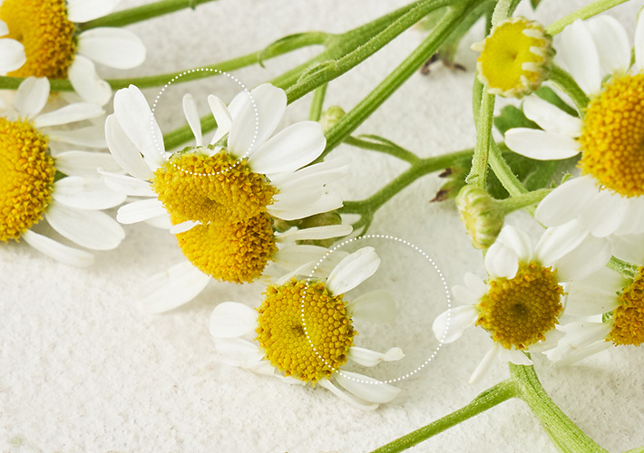 캐모마일은 약 2000년 전부터 유럽에서 약용으로 사용되어 왔습니다. 캐모마일에는 플라보노이드, 카마줄렌, 아피제닌 등의 항산화 성분이 풍부하여, 항염, 항균, 진정, 진통 등의 효과가 있습니다.