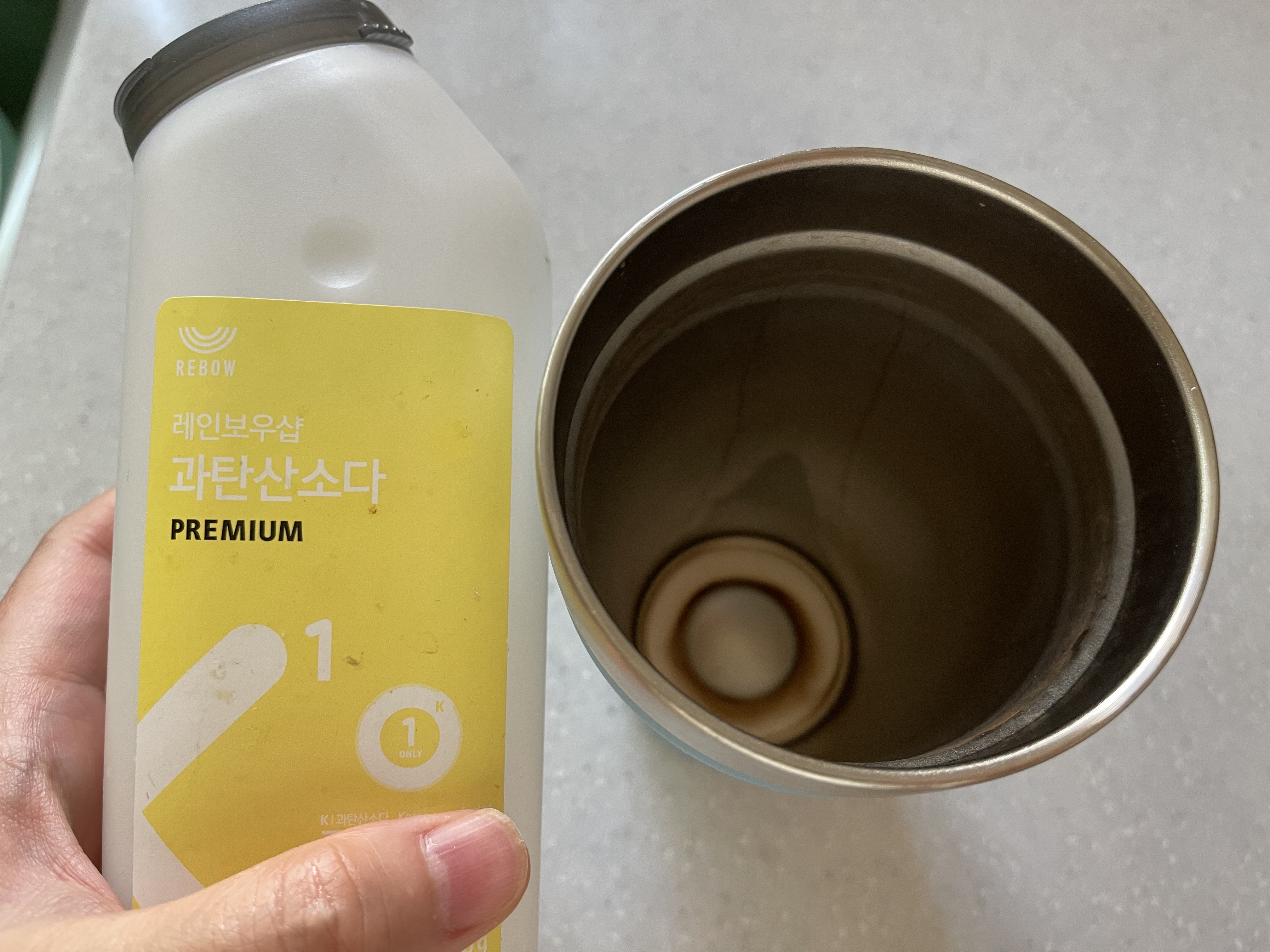 2~5분 놔두었다가 세제로 깨끗이 씻어내면 처음의 새 텀블러와 같은 모습을 볼 수 있을 겁니다.