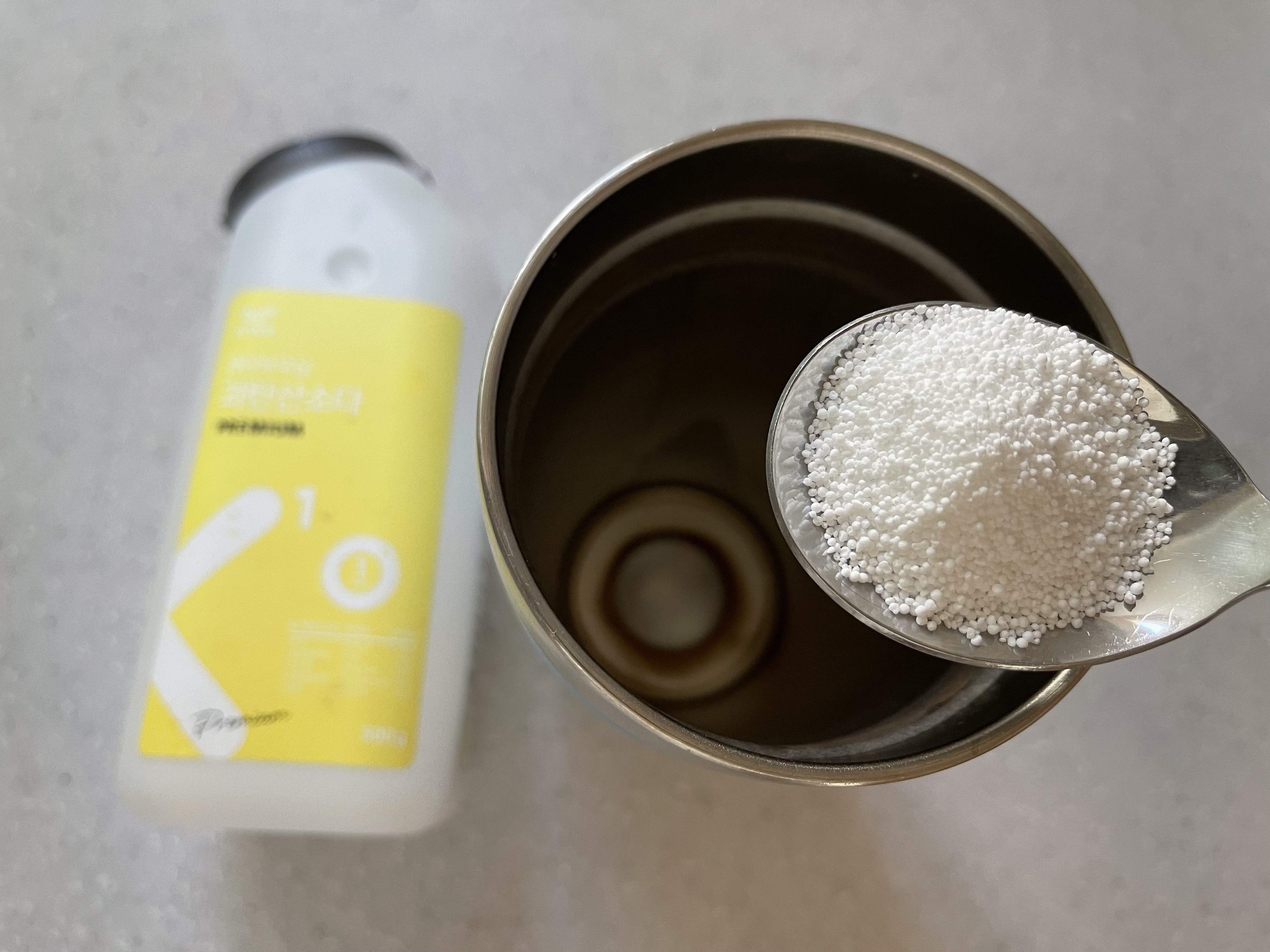 ↑ 텀블러를 세척하기 위해서 과탄산소다와 끓인 물을 준비하세요.